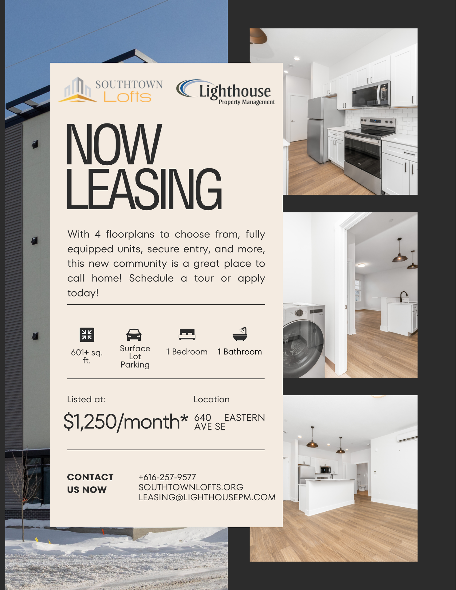 Welcome to Southtown Lofts! Our new one-bedroom apartments combine timeless charm with modern luxury. Each home features a distinctive floor plan with stainless steel appliances, in-unit washer and dryer, sleek quartz countertops, and elegant tile backsplashes — offering both style and convenience in every detail. Located off Eastern Ave, shopping, highway, access, and walkability to local hot spots is all here!