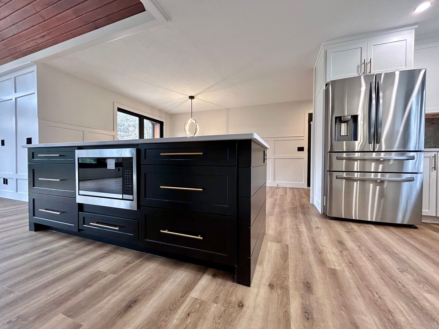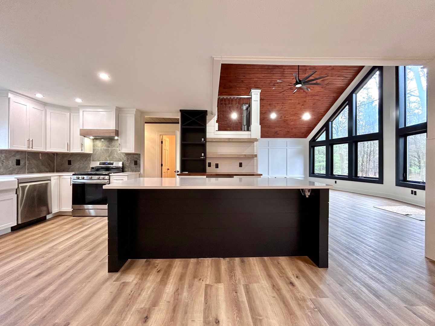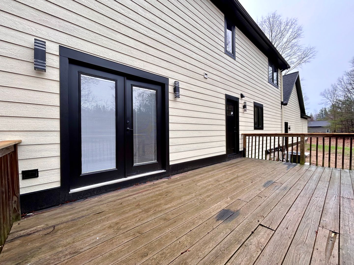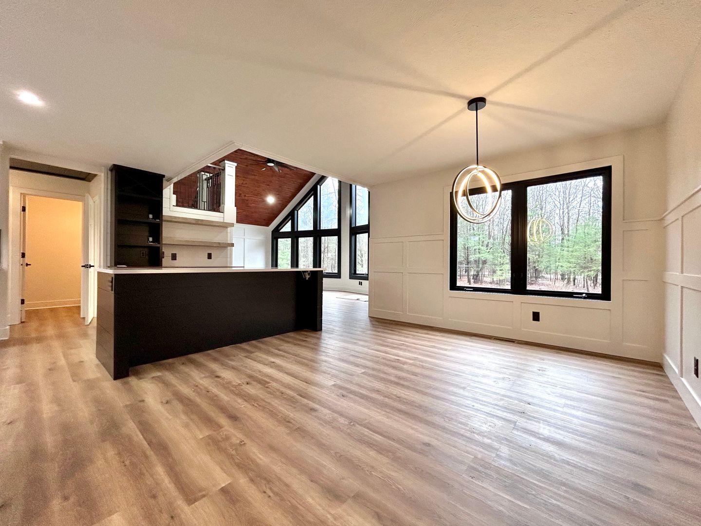 Located in North Muskegon, this three-bedroom, two-bath home offers comfortable living with a range of beautiful-modern features. Enjoy outdoor time on the deck overlooking a large backyard space. Inside you will find large windows lining the main living area with vaulted ceilings and recessed lighting. The kitchen offers efficient stainless steel appliances and lots of cabinet space with an island dividing the space. The dining room is right off the kitchen with a modern chandelier. The property includes a full partially finished basement that provides extra usable space, plus a dedicated laundry room with hookups for convenience. You will find a beautifully lit wine rack and bar in the basement along with a decorative fireplace, great for entertaining or relaxing. Vehicle parking and extra storage is abundant with a three-car attached garage and entryway built-ins. This home combines functional spaces and thoughtful details for everyday living. Resident is responsible for all utilities, lawn and snow. Schedule a tour today to see this amazing home!