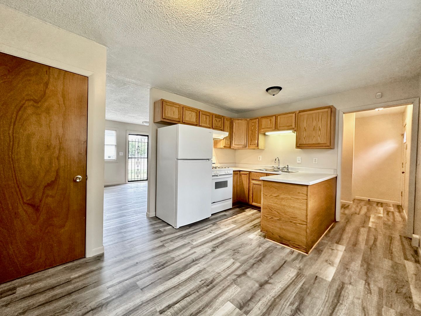 Cute three bedroom, one bathroom ranch available for rent in Muskegon, just south of Apple in Angell. Enjoy lots of natural light on this spacious corner lot. Upon entry is the large living room with lots of natural light. Through the short hallway is the kitchen with dine-in and pantry space along with a bar area. Through the kitchen you find access to the full unfinished basement with washer/dryer hookups and backyard. Back through the kitchen and hallway is the full bathroom and bedrooms with closet space. Enjoy a partially fenced yard and off-street parking in the driveway. Tenant is responsible for all utilities and lawn care/snow removal. Renters insurance required. Pet friendly (fees apply).