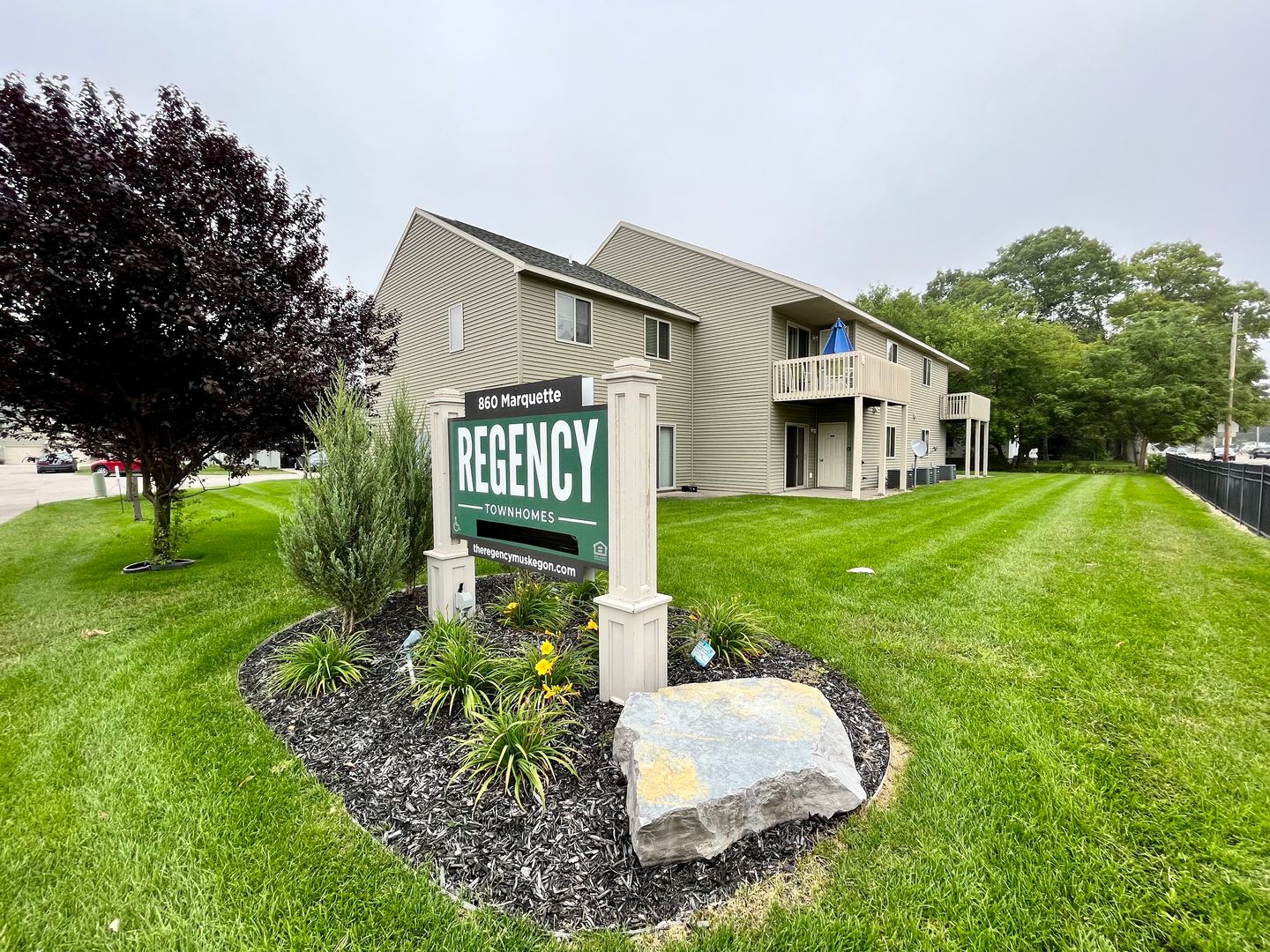 Two bedroom, one bathroom apartment available within The Regency complex in Muskegon. Located off Marquette Ave and S Getty, this unit features full kitchen with a pass through window into the spacious living area that includes slider doors to the patio. A full bathroom and two large bedrooms sit off the living space with walk in closets. Other amenities include off street parking, one stall attached garage, washer/dryer hookups, and central air. Tenant is responsible for gas, electric, and a $55 flat rate monthly fee towards water and sewer. All other utilities are included (trash removal, lawn care, snow plowing). Renters insurance required. Cat friendly.